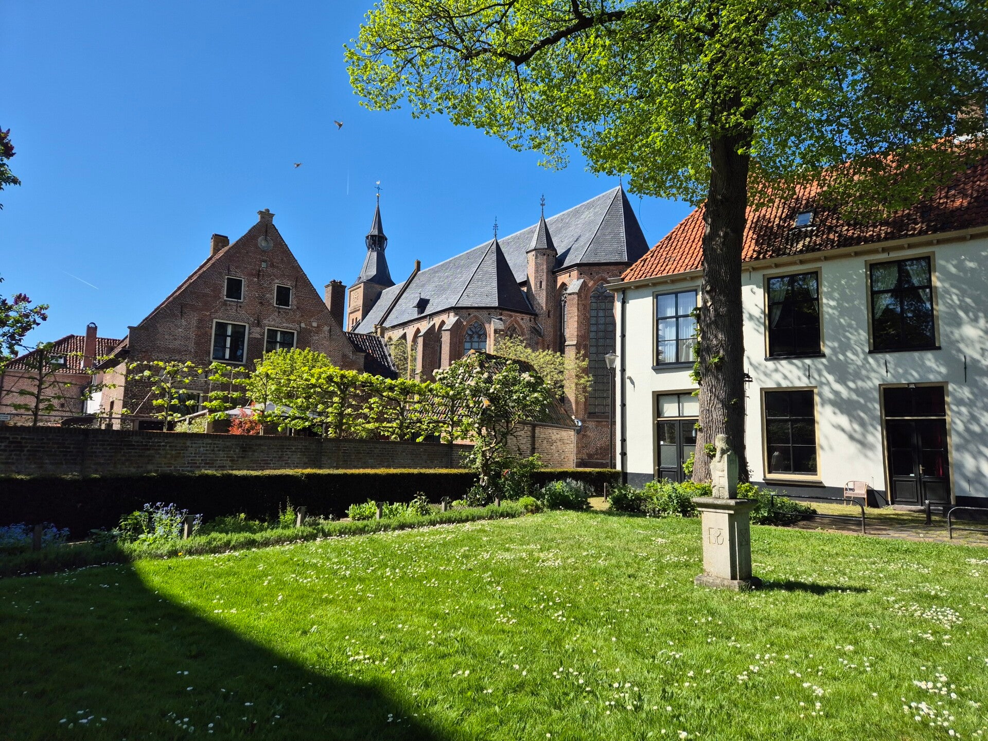 Kruidentuin De Franse Hof in Hattem is voor iedereen te bezoeken en je mag hier gratis kruiden plukken voor eigen gebruik. Ik heb hier een gezicht op de achterkant van de Grote Kerk geschilderd op een zonnige dag in april.