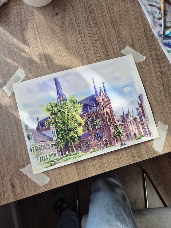 Het schilderij is geschilderd met aquarelverf op Arches watercolor papier.