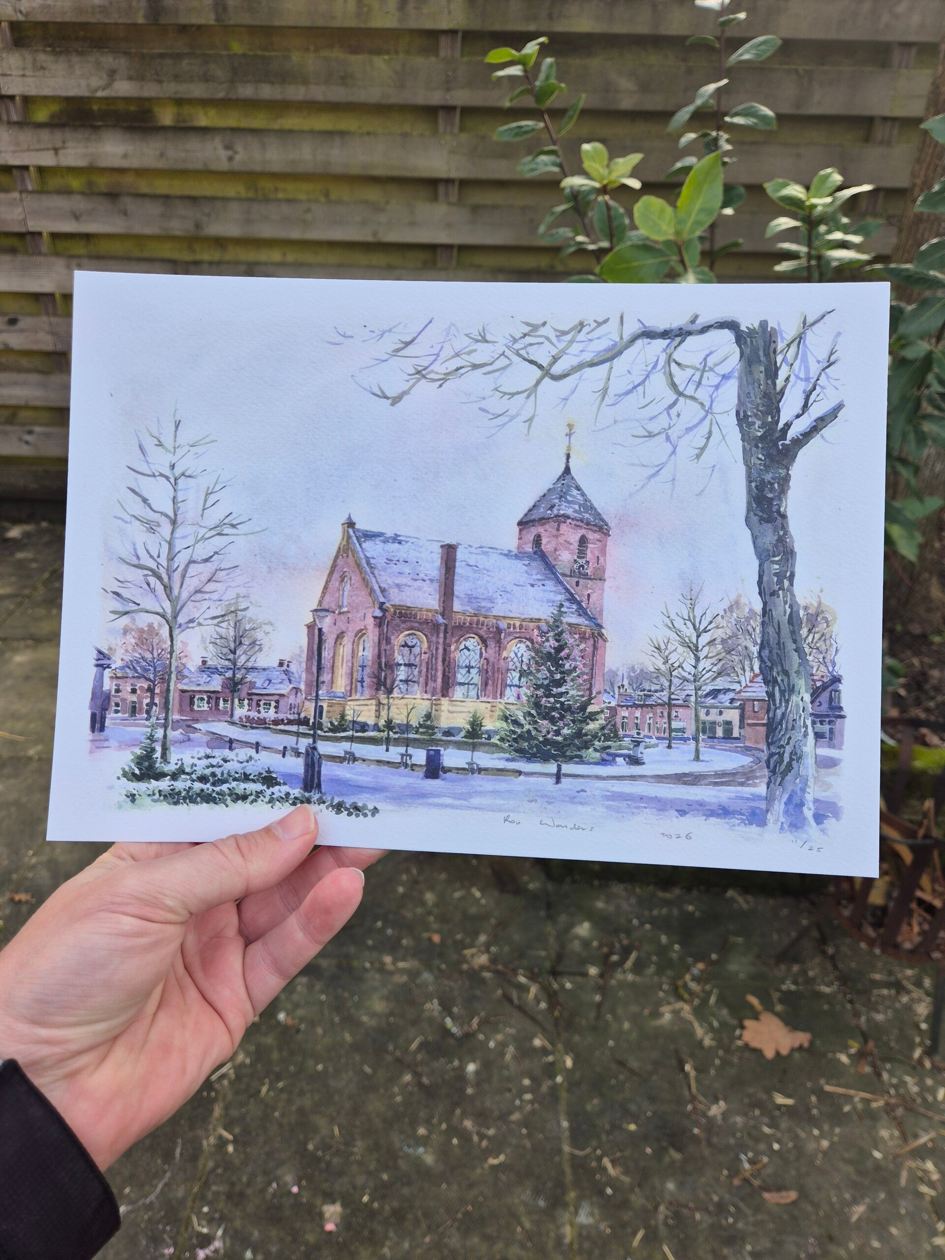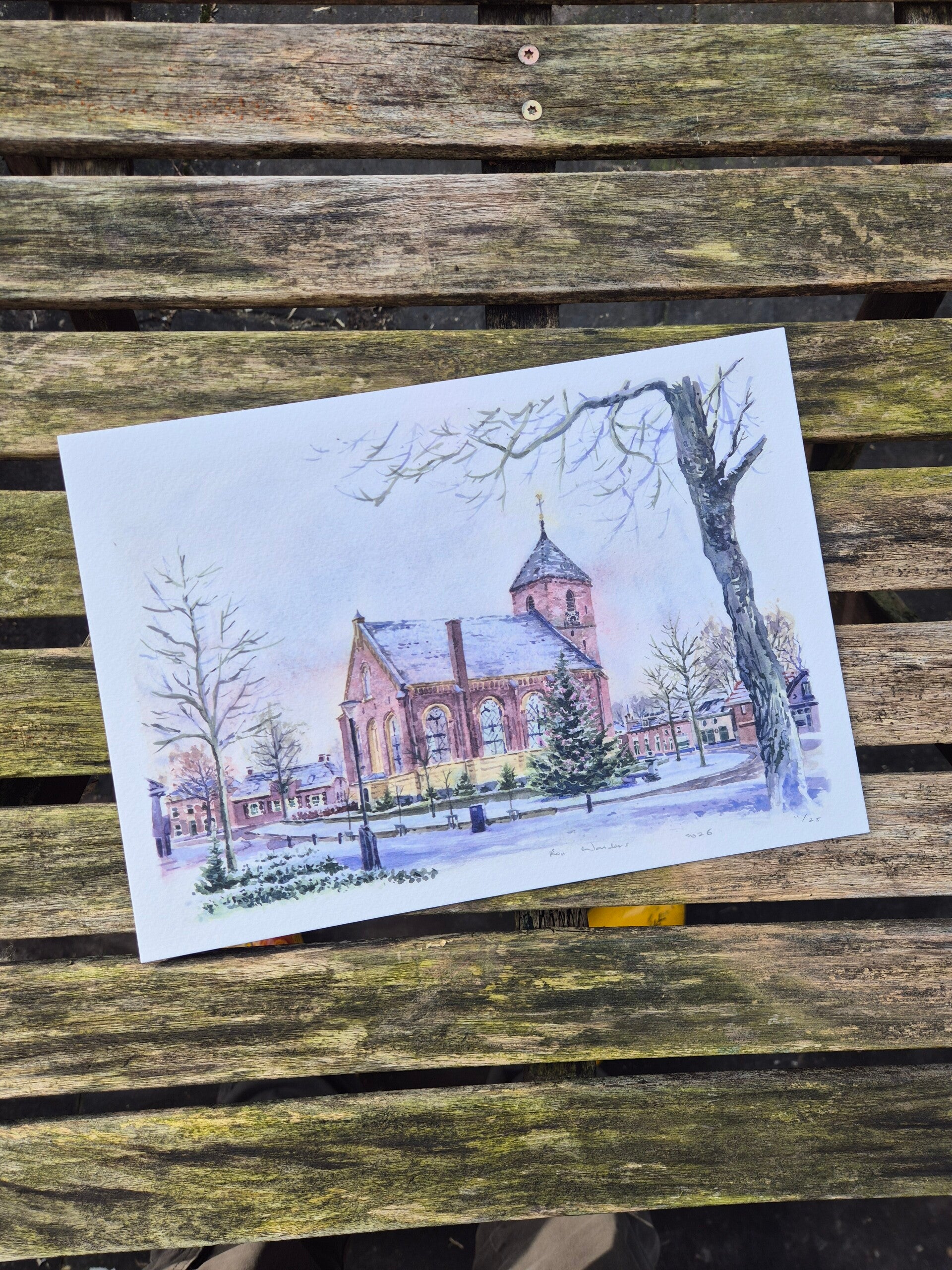 Het origineel is geschilderd in het najaar van 2025. Van deze aquarel zijn 25 afdrukken gemaakt en deze worden gedrukt op hoogwaardig Tintoretto aquarelpapier.